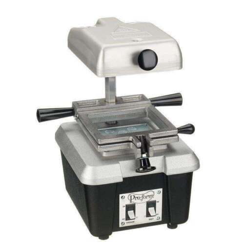 The Single Chambered Vacuum Former is an economical answer that can still excellently fabricate most thermoplastic appliances. The all-aluminum construction eliminates rusting and the heating element is symmetrically engineered for uniform heat distribution. The hexagonal post keeps the frame from rotating or sliding.