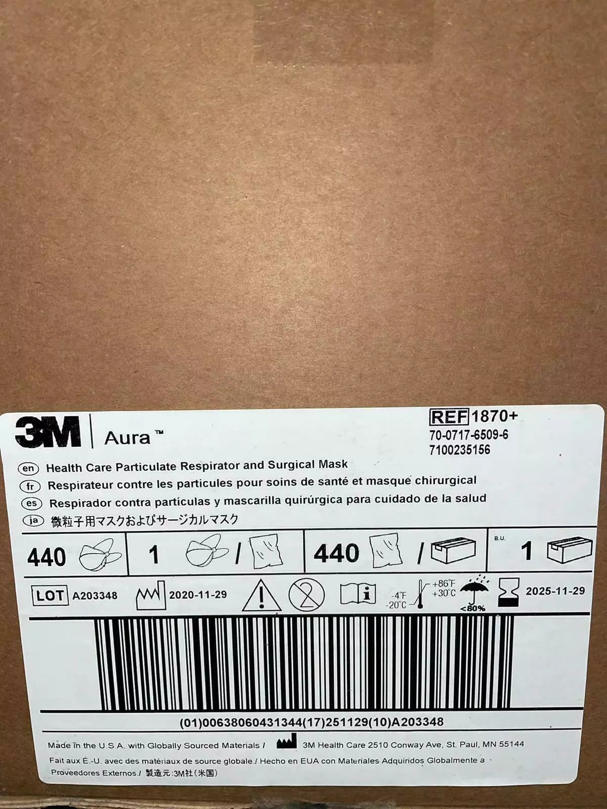 Package Contents: 1870 3M N95 Mask 20/Pk