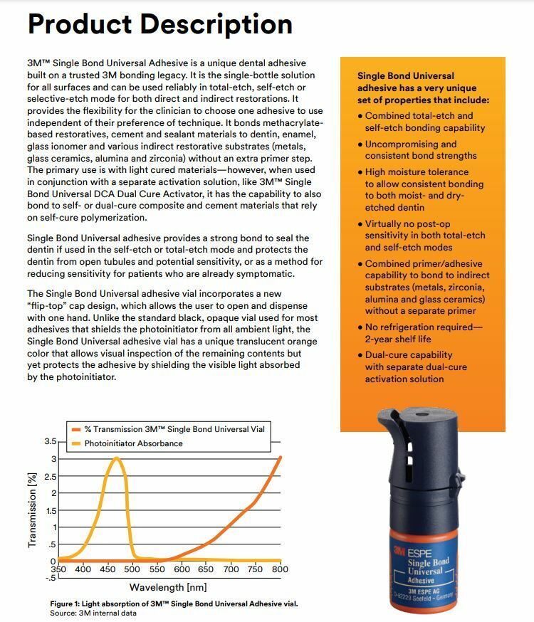 This single-bottle adhesive solution offers high bond strength with one simple application technique and a quick 35-second adhesive application time.