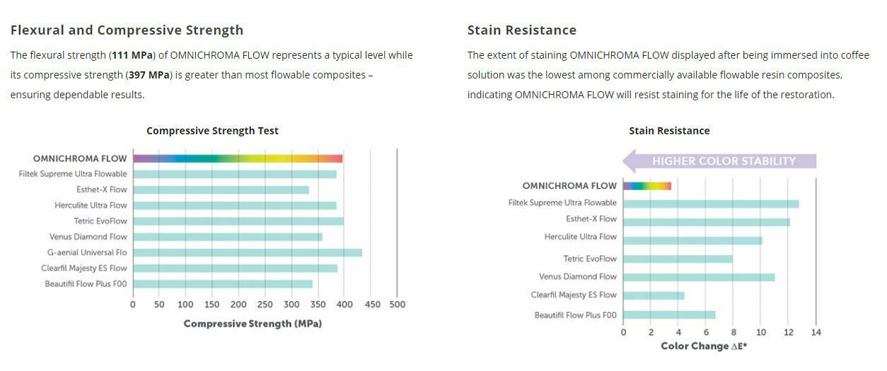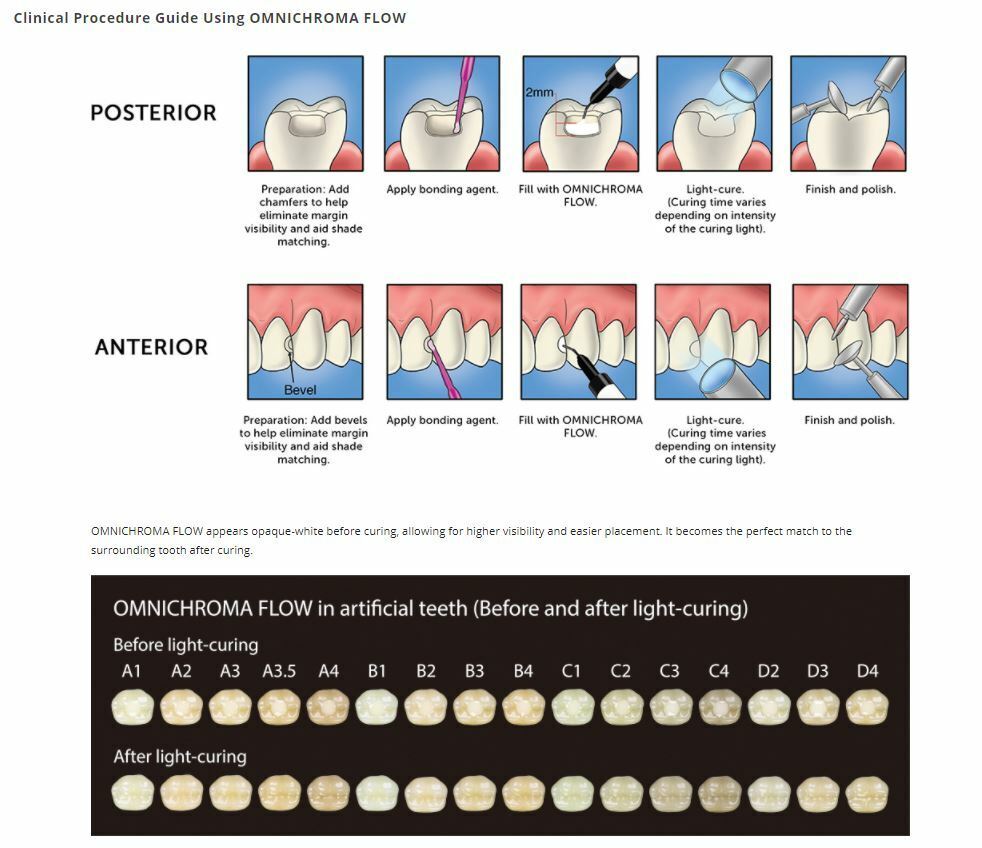 Tokuyama Omnichroma Flow 1 Shade Resin Based Flowable Restorative Composite 3gm Syringe FDA OMNICHROMA FLOW is the world’s first one-shade flowable composite to esthetically match every color of tooth from A1 to D4 with a single shade of composite. Tokuyama Dental’s Smart Chromatic Technology, first implemented through the universal composite OMNICHROMA, has changed the way dentists practice restorative dentistry forever. Now, the same one-shade benefits are available in a flowable consistency capable of addressing a wider range of restorative needs, saving clinicians even more time and money. Indications All cases of direct anterior and posterior restorations Cavity base or liner Repair of porcelain/composite Outstanding Features Unprecedented shade matching High polishability High stain resistance Flexural and compressive strength suitable for a wide range of indications Low wear and abrasion Low polymerization shrinkage Benefits To Clinicians Increased efficiency – saving time and money Simplified inventory management Reduction of composite waste Never run low on composite shades ever again Smart Chromatic Technology OMNICHROMA FLOW’s structural color mechanism is made possible by the filler particles within the composite. The 260 nm spherical fillers are of the exact size and shape needed to produce the shade matching effect, allowing the composite to blend in invisibly with surrounding tooth structure. There are 2 Color Producing Phenomena Color is nothing more than wavelengths of light that reach our eyes. White light contains all wavelengths of color – from violet, which is the shortest, to red, the longest, these wavelengths make up the visible spectrum of color that we can see. Chemical Color The most common form of color visible to us and happens when molecules of a material reflect particular wavelengths. Typical composites today rely on the chemical color of added dyes and pigments. Structural Color A phenomenon in which the structure of a material amplifies or weakens different wavelengths to create a certain color. OMNICHROMA composites use structural color to create a shade match to surrounding tooth structure. OMNICHROMA products are the only composites to utilize SMART CHROMATIC TECHNOLOGY, which… Leverages structural color as the main color mechanism Does not require added dyes or pigments Generates color by utilizing fillers themselves to reflect shade of surrounding tooth High Polishability OMNICHROMA FLOW produces extremely high glossiness compared to other commercially available flowable composites. After just 30 seconds, OMNICHROMA FLOW reaches higher levels of gloss than other products can achieve in 60 seconds. Lower Wear and Abrasion OMNICHROMA FLOW exhibits an excellent balance between volume loss of the composite resin and wear of the human tooth – making it less likely to abrade opposing teeth while not easily becoming abraded itself. Low Shrinkage Compared to other commercially available flowable resin composites, OMNICHROMA FLOW exhibits low polymerization shrinkage. Flexural and Compressive Strength The flexural strength (111 MPa) of OMNICHROMA FLOW represents a typical level while its compressive strength (397 MPa) is greater than most flowable composites – ensuring dependable results. Stain Resistance The extent of staining OMNICHROMA FLOW displayed after being immersed into coffee solution was the lowest among commercially available flowable resin composites, indicating OMNICHROMA FLOW will resist staining for the life of the restoration. Viscosity The viscosity of OMNICHROMA FLOW is similar to Estelite Universal Flow Medium and the majority of other commercially available flowable resin composites. Package Contents: 1 x 3g Syringe + 10 Tips |