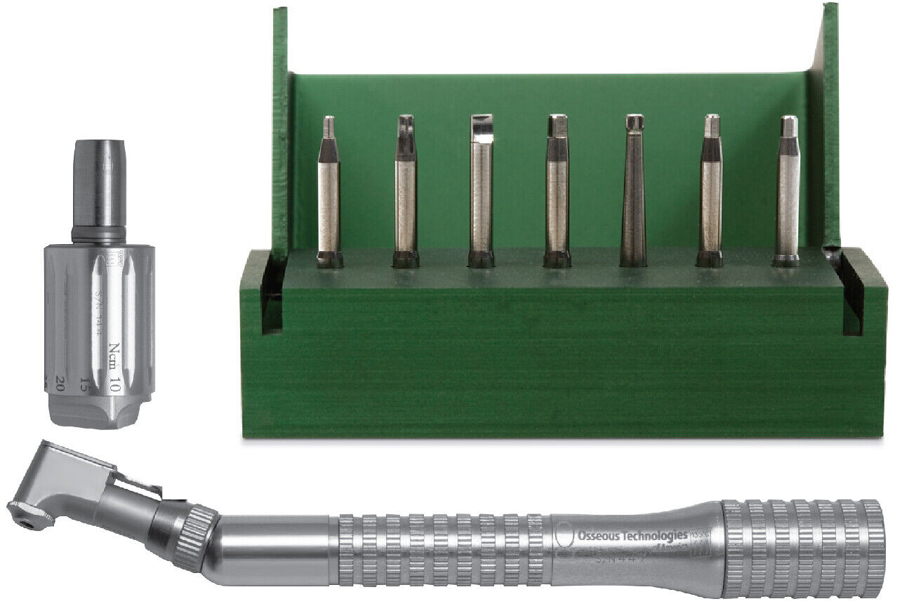 The ATA Torque Adapter easily connects to the Right Angled Driver and has 7 easy torque values (10, 15, 20, 25, 30, 32, and 35 Nom). Easily set the Nom to place the desired implant and never worry about "over torque" since the driver makes a clicking sound when the desired Nom is achieved.