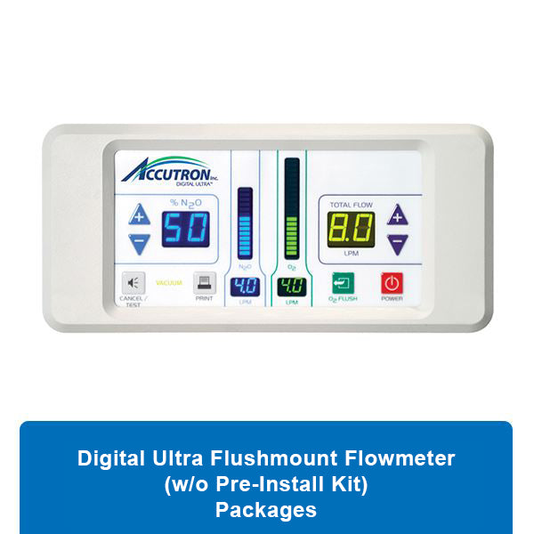 The Digital Ultra® Flushmount is the right choice for clinicians who prefer to work in a digital environment but want critical parameters displayed both numerically and as electronic flow tubes. The ease of color-coded, fingertip controls is an additional feature of the flowmeter. Its sealed flush surface makes it easy to disinfect or barrier-protect. The unit’s design complements aseptic, contemporary operatory environments.