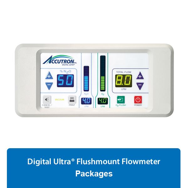 The Digital Ultra® Flushmount is the right choice for clinicians who prefer to work in a digital environment but want critical parameters displayed both numerically and as electronic flow tubes. The ease of color-coded, fingertip controls is an additional feature of the flowmeter. Its sealed flush surface makes it easy to disinfect or barrier-protect. The unit's design complements aseptic, contemporary operatory environments.