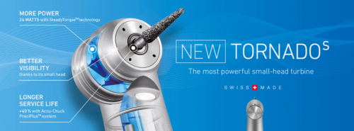 With its compact head and exceptional power output, the new TORNADOS turbine is the latest technical innovation from Bien-Air Dental.