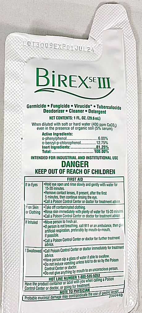 Birex SE III is an EPA-approved, one-step cleaner and disinfectant effective against a broad spectrum of pathogens including highly resistant mycobacterium tuberculosis (TB). It is List N approved for use against SARS-CoV2 and complies with OSHA’s Blood Borne Pathogens Standard and CDC guidenlines for dental cleaning and disinfection. Formulated without harsh solvents for high-frequency use on common dental surfaces.