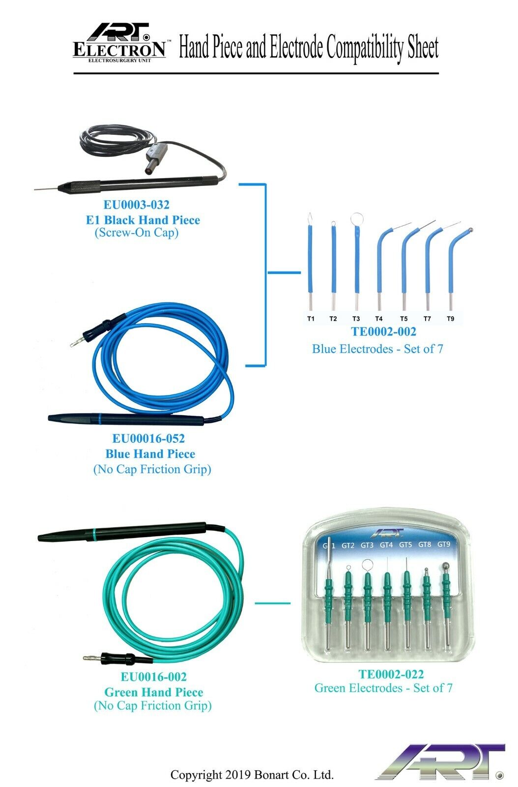 The GT1, GT2, GT3, GT4, GT5, GT8, and GT9 electrodes are for use with the ART-E1 Electrosurgery system.