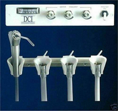 | DCI Panel Flush Mount Dental Delivery Unit 3 Handpiece Auto & Syringe Features & Benefits: Individual drive air & water coolant controls Precision Comfort Syringe Wet/Dry foot control Control dimensions: 8 1/2" x 1 3/4" x 5" Cut-out dimensions: 7 1/2" x 1 1/2" |