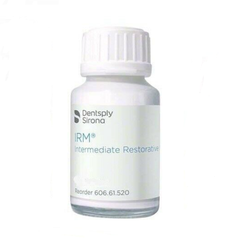 IRM Intermediate Restorative material is designed for intermediate restorations intended to remain in place for up to one year. The eugenol content in the polymer-reinforced zinc oxide-eugenol composition gives the material sedative like qualities on hypersensitive tooth pulp and is a good thermal insulator as well. IRM may also be used as a base under cements and restorative materials that do not contain resin components, such as amalgams, and inlays and onlays. Among the many other applications are: emergency placement prior to complete treatment, endo access openings, pedo teeth that will soon exfoliate, and caries management programs. Its strength properties approach those of zinc phosphate cement. Other physical-related clinical advantages include: excellent abrasion resistance good sealing properties and low solubility. This material is available in an ivory shade via capsule or a powder liquid hand-mix delivery.