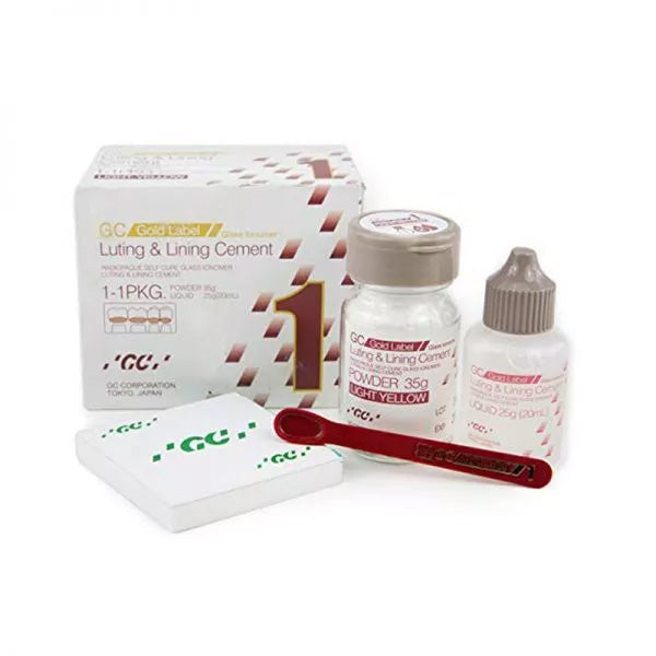 GC Gold Label 1 is designed for the final cementation of crown and bridge restorations. It has been refined to provide enhanced physical properties. GC Gold Label 1 chemically bonds to tooth structure and metal which provides excellent strength and marginal integrity for long term restorations. It's also well suited for securing metal inlays, onlays, posts and orthodontic brackets.
