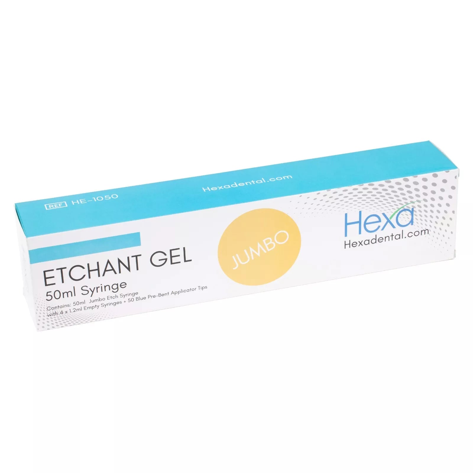 Hexa Etchant Gel is a cutting-edge etching gel. Our formulation ensures optimal enamel etching for superior bonding while safeguarding against over-etching and enamel damage. With controlled viscosity for easy application, this gel stays exactly where you place it, preventing any slumping or runoff onto exposed tissues. Enjoy hassle-free cleanup as Hexa Dental’s Etchant Gel easily washes off with water.