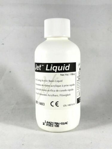 | Lang Jet Denture Repair Acrylic Resin Liquid 118 ml (4 oz) Jet Tooth Shade is a fast-curing acrylic resin used for making temporary crown and bridge restorations. Features and Benefits: Sets in 6 to 9 minutes Provides long term, color stable results Methyl methacrylate Hardens with durability, easy to polish and trim Wide range of color options Reference No: 1403 Expiry: 2026-03 Package contents: 4 oz Bottle (118 mL) Select the quantity |