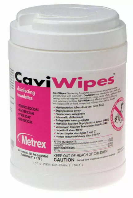 Metrex CaviWipes Germicidal Hospital Towelettes Large 6" x 6.75" 160 Can