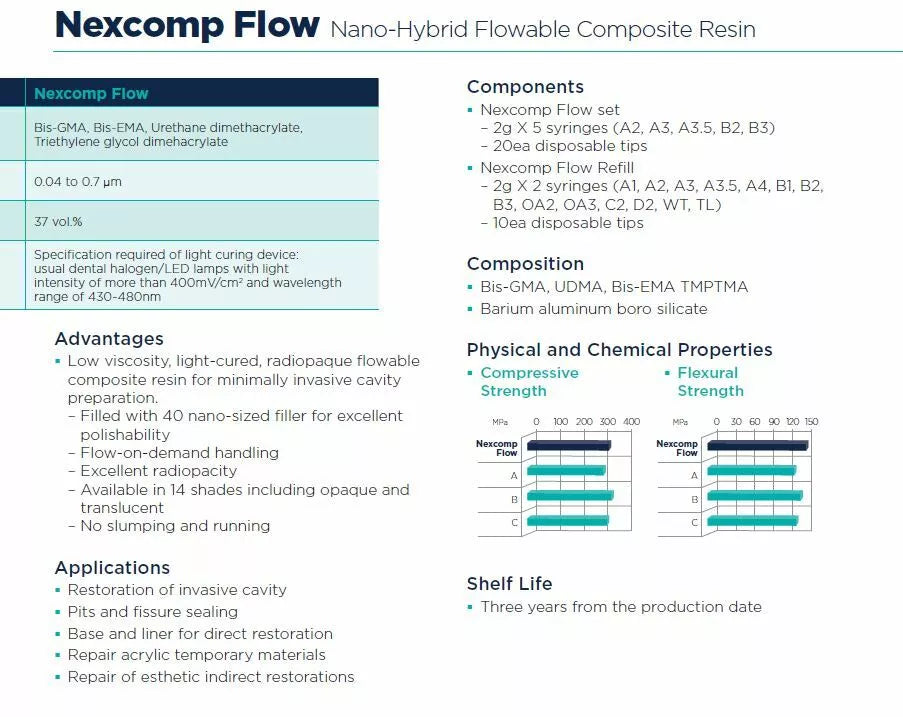 Nexcomp Flow Nano Hybrid Flowable Composite Resin – Syringe Refill, 2 x 2gm. Unidoses. Anterior and Posterior Light Cured Restorative