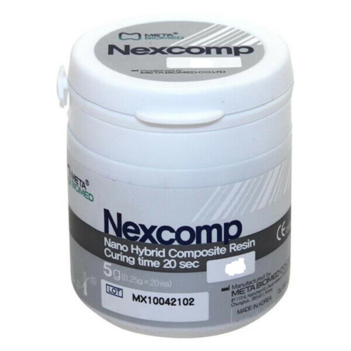 | Nexcomp Nano Hybrid Composite Resin 20 x 0.25 Gm, A3.5 Curing time: 20 seconds Description: Nexcomp Nano Hybrid Composite Resin - Unidose Refill: A3.5, 20 x 0.25 Gm. Unidose. Anterior and Posterior Light Cured Restorative. Low shrinkage rate for superior marginal integrity. Excellent sculpability for restoring natural shape and function, non-sticky, non slumping. Package contents: 20 x 0.25 Gm |