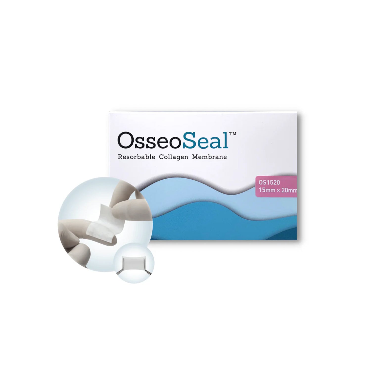 OsseoSeal can be placed either dry or hydrated. OsseoSeal can be trimmed to the size and shape of the defect in a dry or wet state using scissors. A piece of sterile Tyvek may be used as a template for membrane sizing and trimming. OsseoSeal should overlap the walls of the defect by at least 2 mm to allow complete bone contact and to prevent gingival connective tissue invasion below the material. The membrane may be secured in place with sutures, tacks, or by means of sufficient contact with the mucoperiosteal flap to avoid displacement and micro motion during healing. To facilitate proper healing, ensure that there is tension-free primary closure of the soft tissue flap covering the membrane