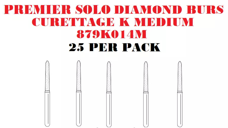 Premier Dental SOLO Premium Diamond Burs Curettage K MEDIUM 879K014M 25pcs USA