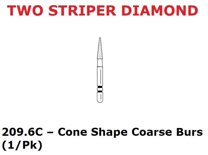Premier Dental TWO STRIPER Diamond 209.6C – Cone Shape Coarse grit Burs (1/Pk)