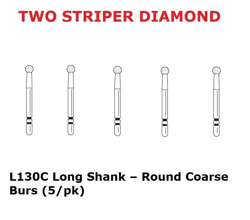 Premier Dental TWO STRIPER Diamond L130C Long Shank – Round Coarse Burs (5/Pk)
