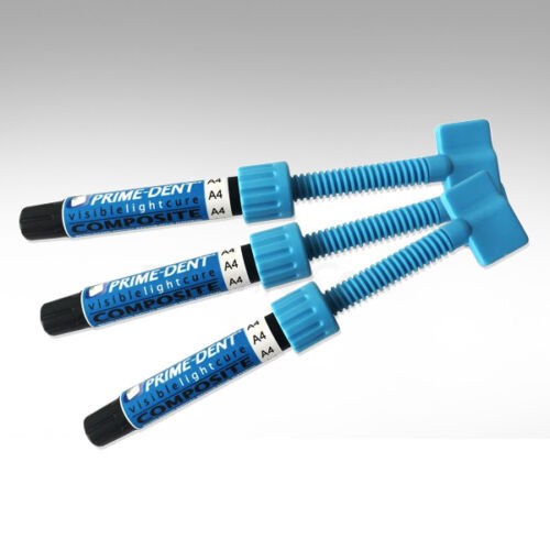 | Prime Dent Resin Based Nano Hybrid Visible Light Cure (VLC) Composite All Shades FDA This resin composite with unique nanofiller technology. Formulated with nanocluster filler particles, the composite is purported to combine the strength of a hybrid and the polish of a microfil. Nanomers are discrete nanogglomerated particles of 7 nm in size. Nanocluters are loosely bound agglomerates of nano-sized particles. The agglomerates act as a single combination of non-agglomerated 7 nm nanosilica filler and aggregated schott glass/silica nanocluster filler. The cluster particle size range is .7 microns. The filler loading is 74% by weight. This reportedly provides increased filler loading, better physical properties and improved polish retention when compared to composites containing only nanoclusters. {7 x 4.5g Syringes (A1, A2, A3, A3,5, B2, C1, UO) 7 ml Light Cure Dentin/Enamel Bonding Adhesive Bottle 7 ml Surface Sealant Bottle + 4 gm Etchant Gel Syringe 15 Brush Tips + 1 Brush holder + 5 Dispensing Needle Tips + 2 Mixing wells and IFU} per pack |