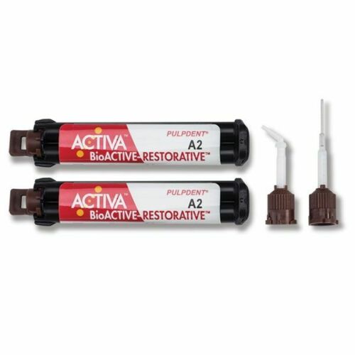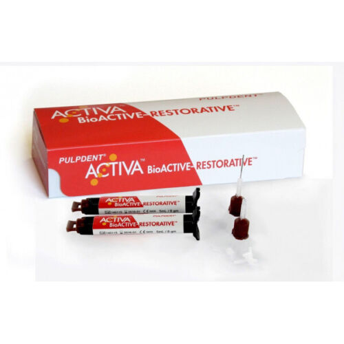 ACTIVA BioACTIVE-RESTORATIVE is a highly esthetic, bioactive composite that delivers all the advantages of glass ionomers in a strong, resilient, resin matrix that will not chip or crumble. It chemically bonds to teeth, seals against bacterial microleakage, releases more fluoride and is more bioactive than glass ionomers, and is more durable and fracture resistant than composites.