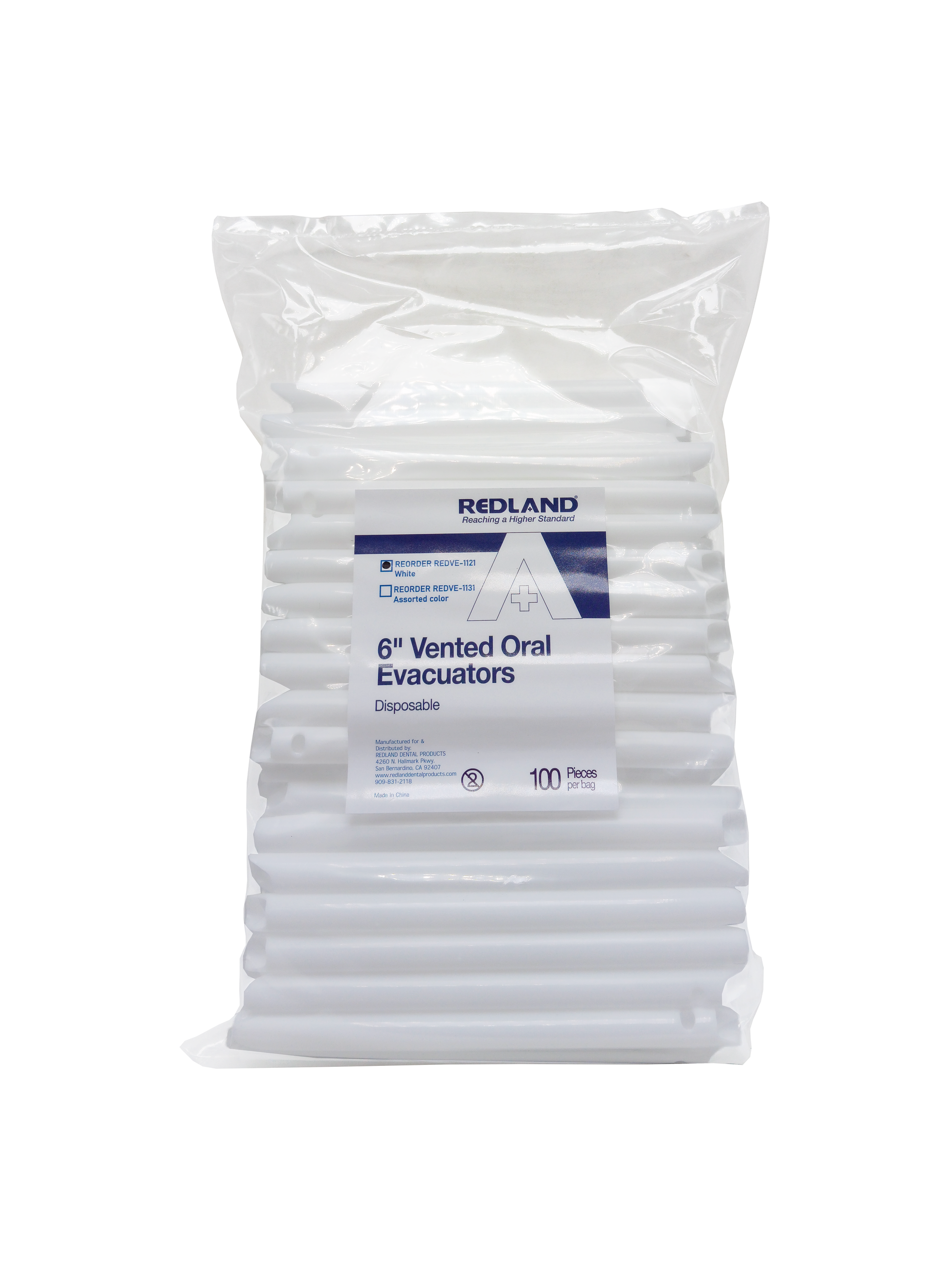 RED-VE1121Redland 6" Vented Oral Evacuation HVE Tips (White)