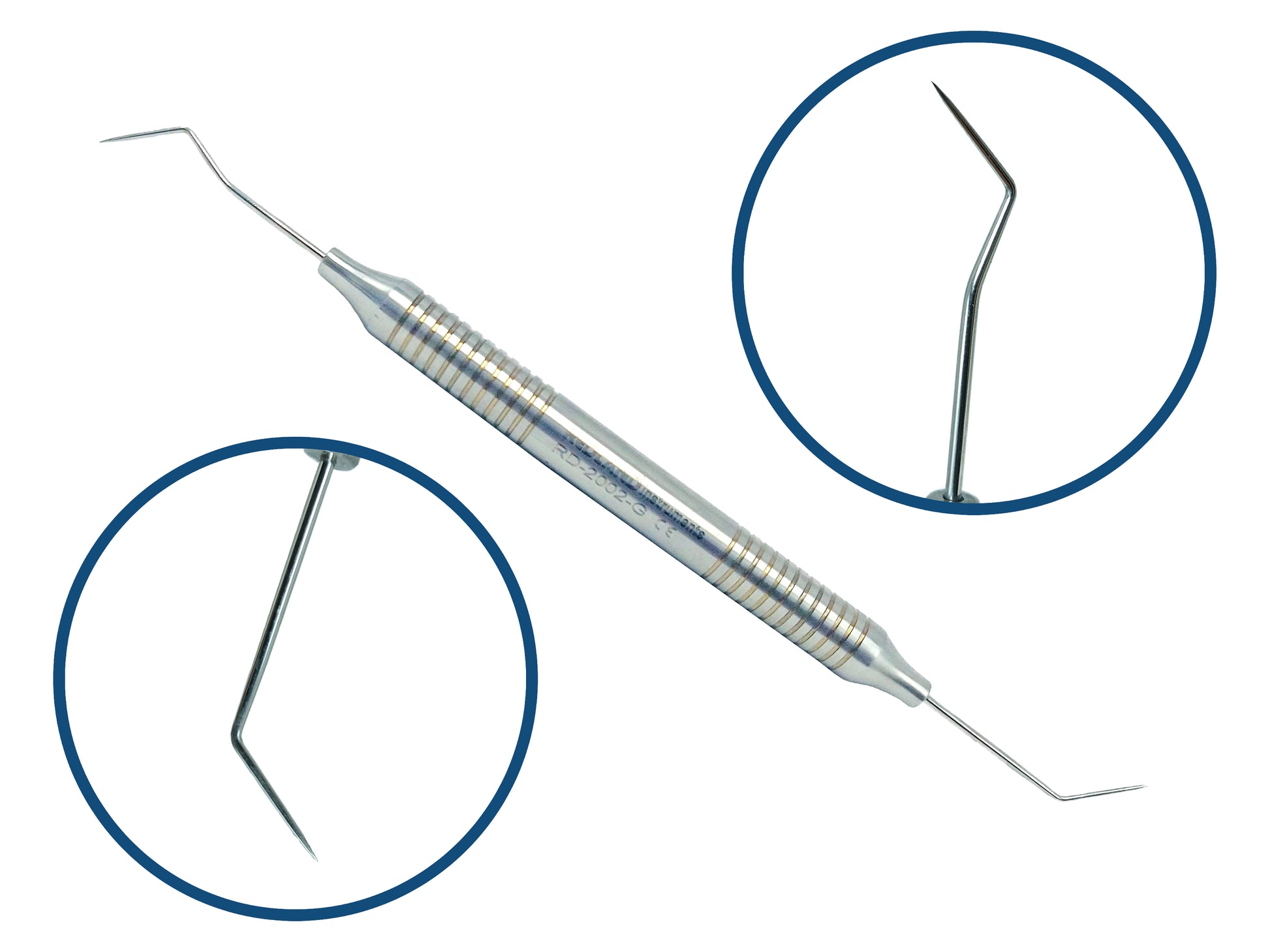 Long, thin shanks enable exploration of orifices and removal of calcification in soft tissue.