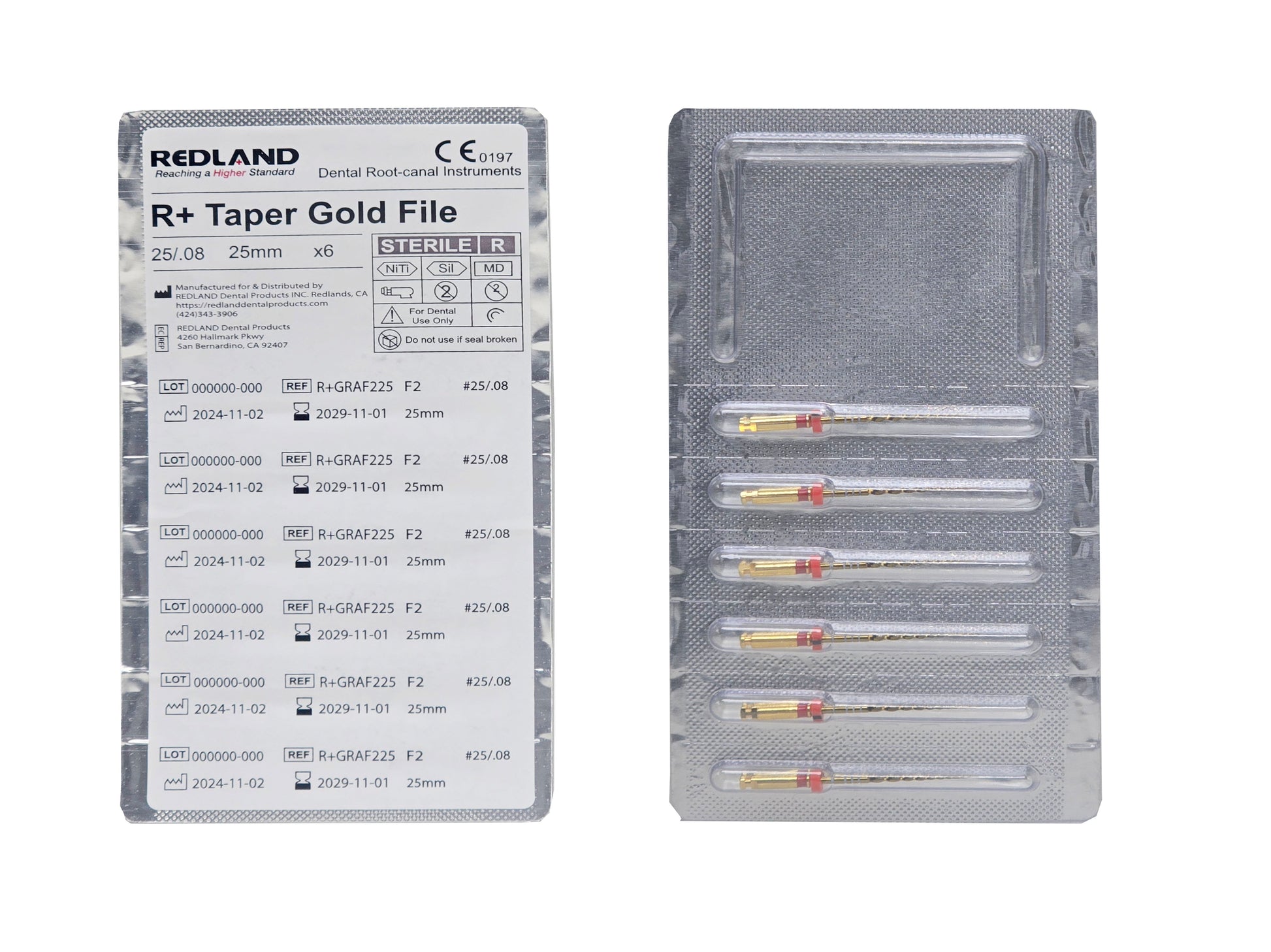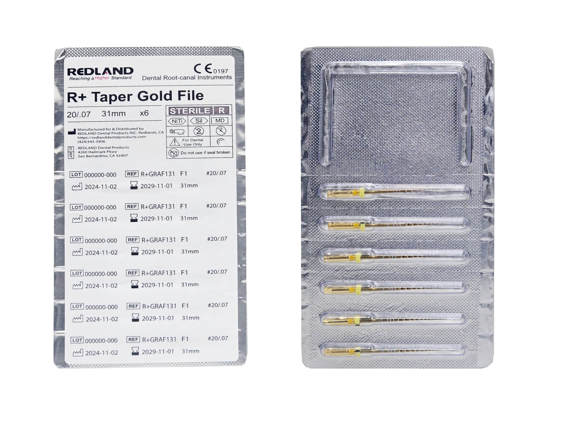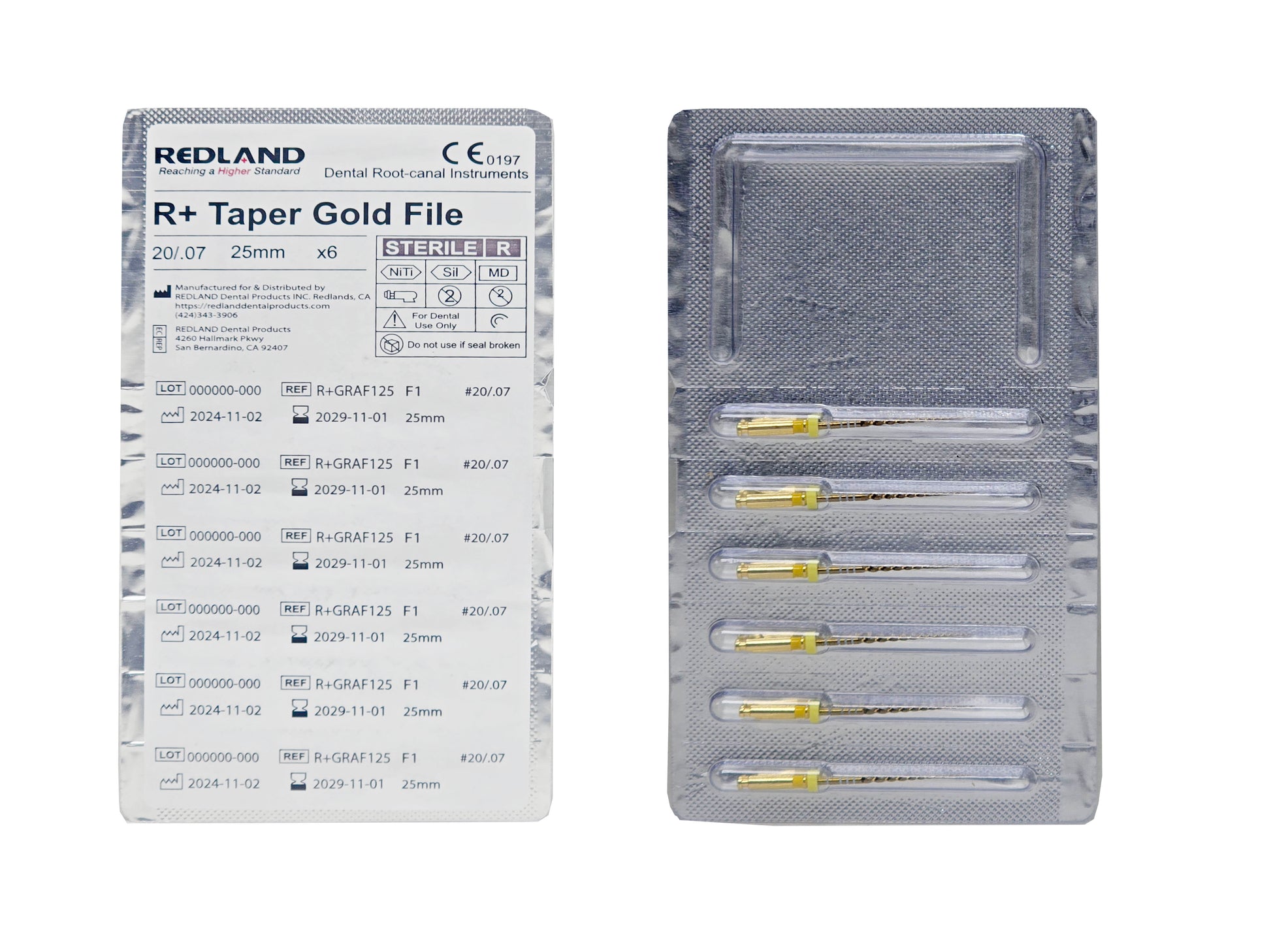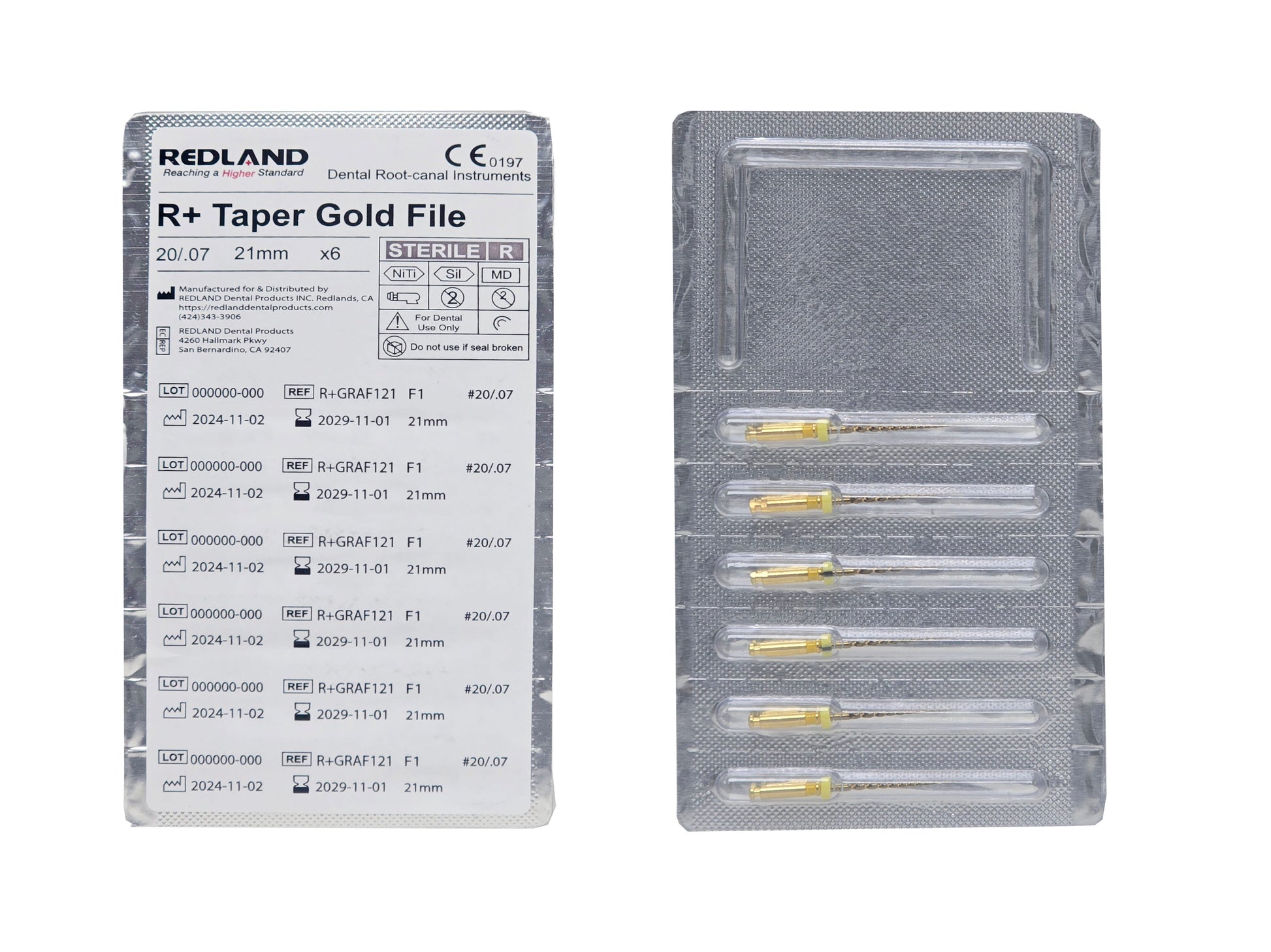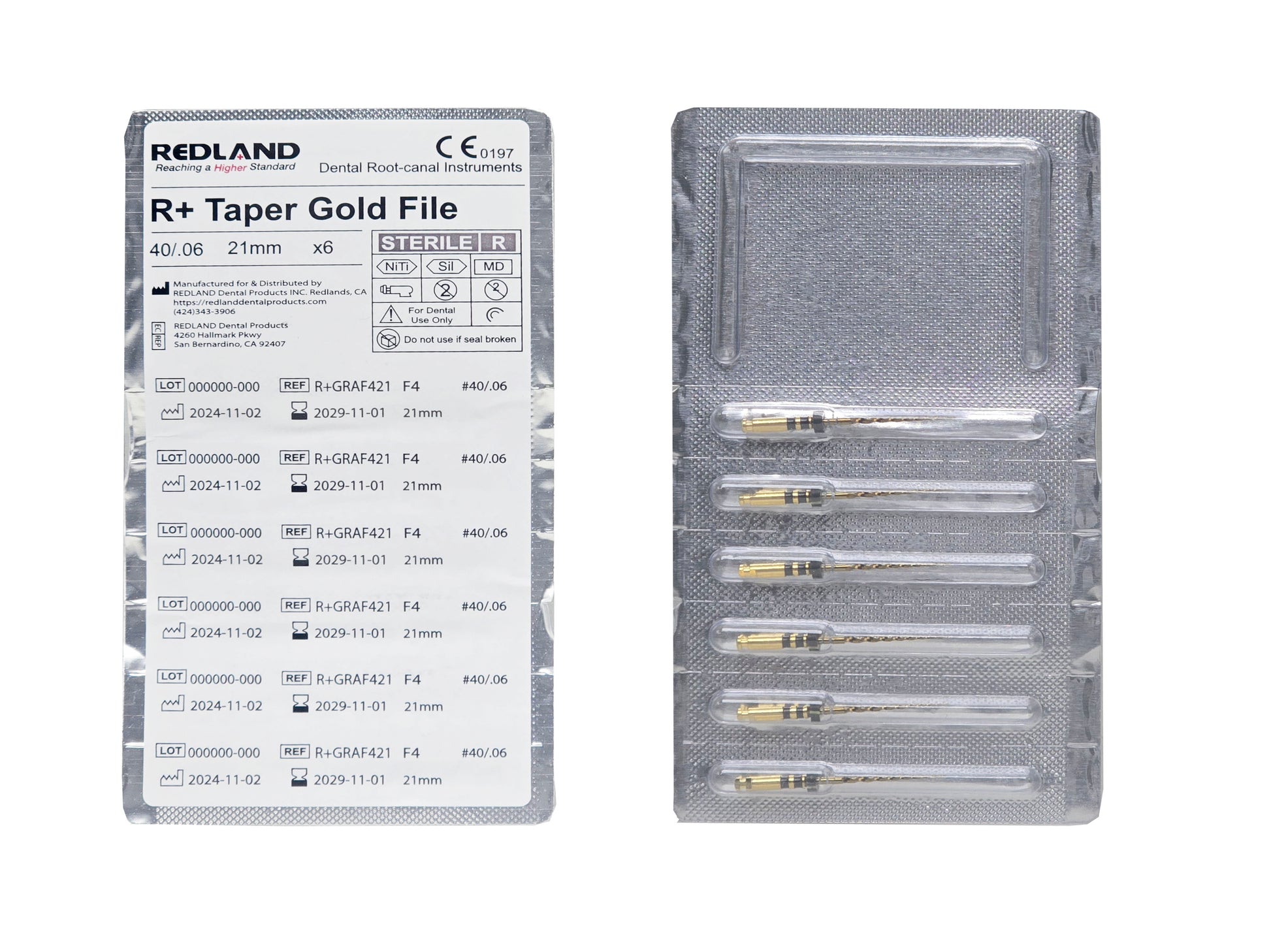 R+ Taper Gold features the same simplicity, smoothly tapered shapes and predictable performance you know and trust from R+ Taper Universal. Now the R+ Taper legacy continues with R+ Taper Gold. Developed with proprietary advanced metallurgy, R+ Taper Gold rotary files deliver greater flexibility for predictable R+ Taper performance that’s more brilliant than ever.