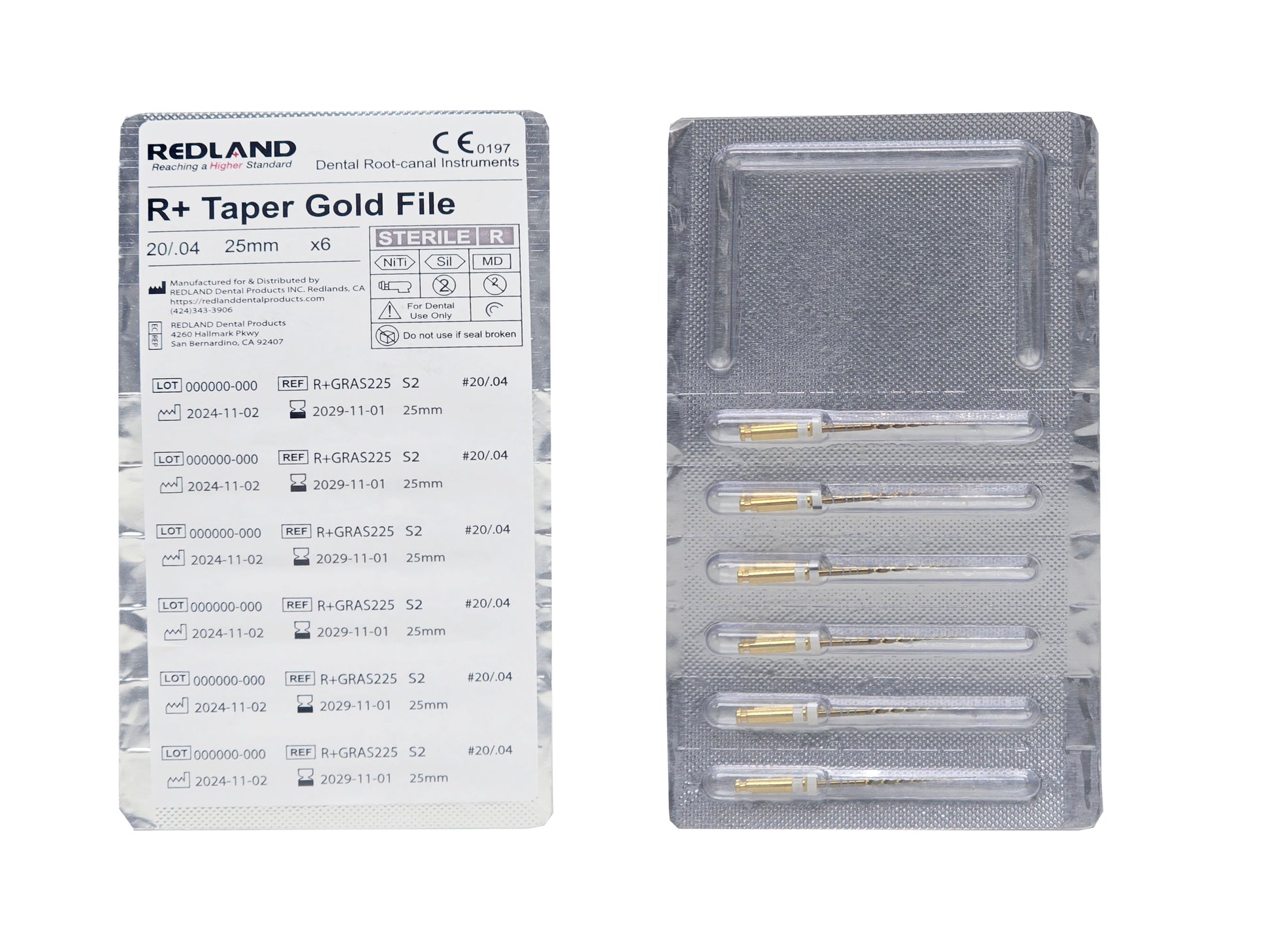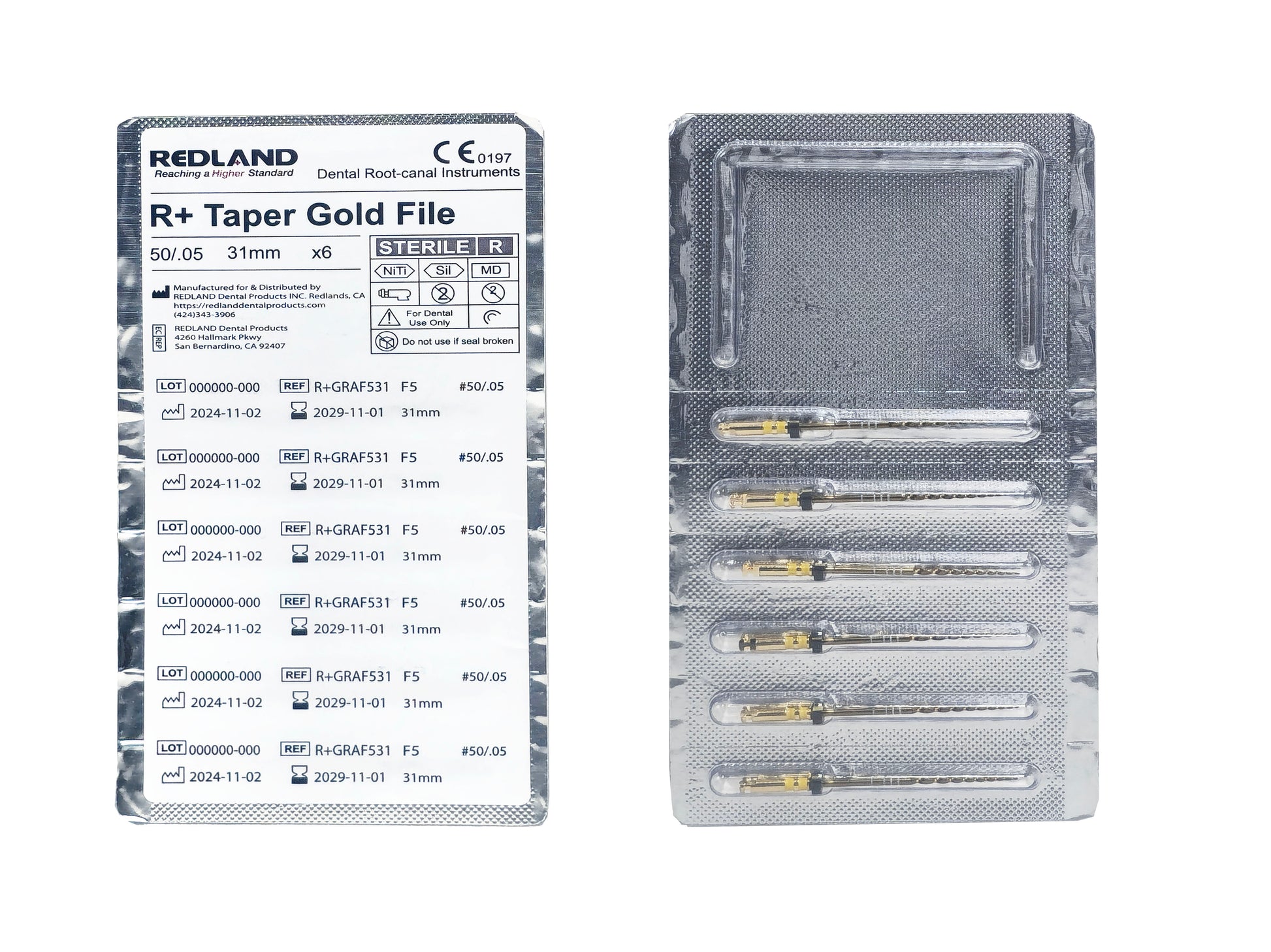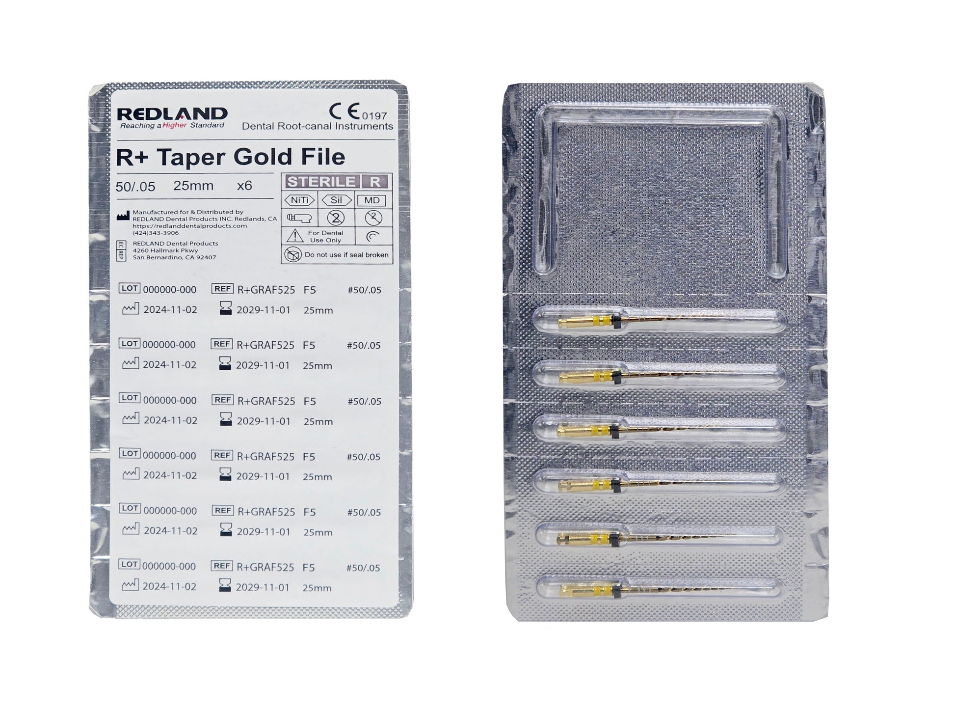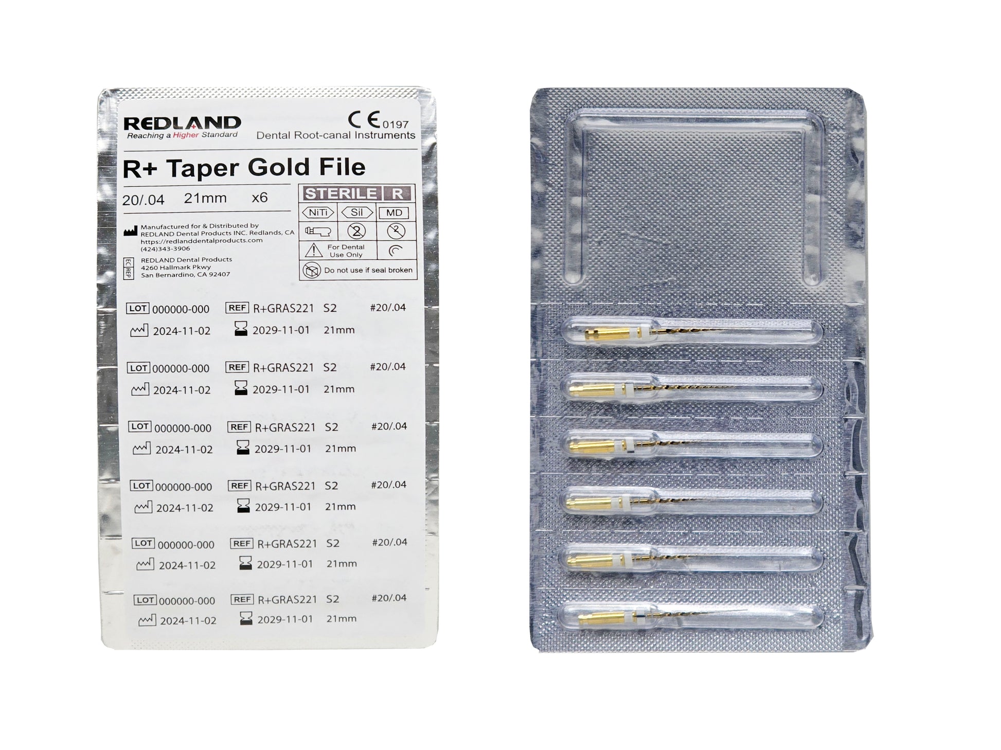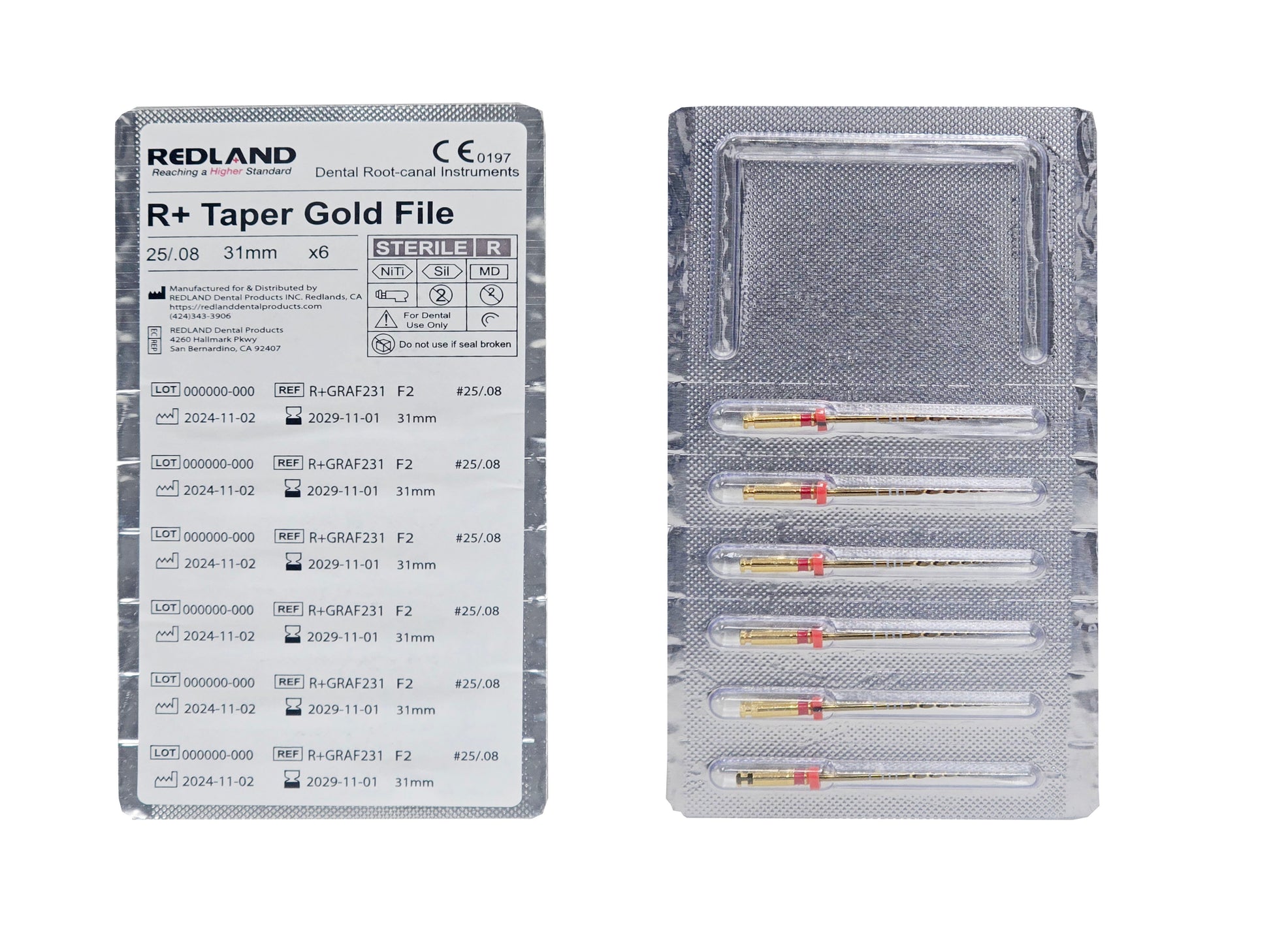 R+ Taper Gold features the same simplicity, smoothly tapered shapes and predictable performance you know and trust from R+ Taper Universal. Now the R+ Taper legacy continues with R+ Taper Gold. Developed with proprietary advanced metallurgy, R+ Taper Gold rotary files deliver greater flexibility for predictable R+ Taper performance that’s more brilliant than ever.