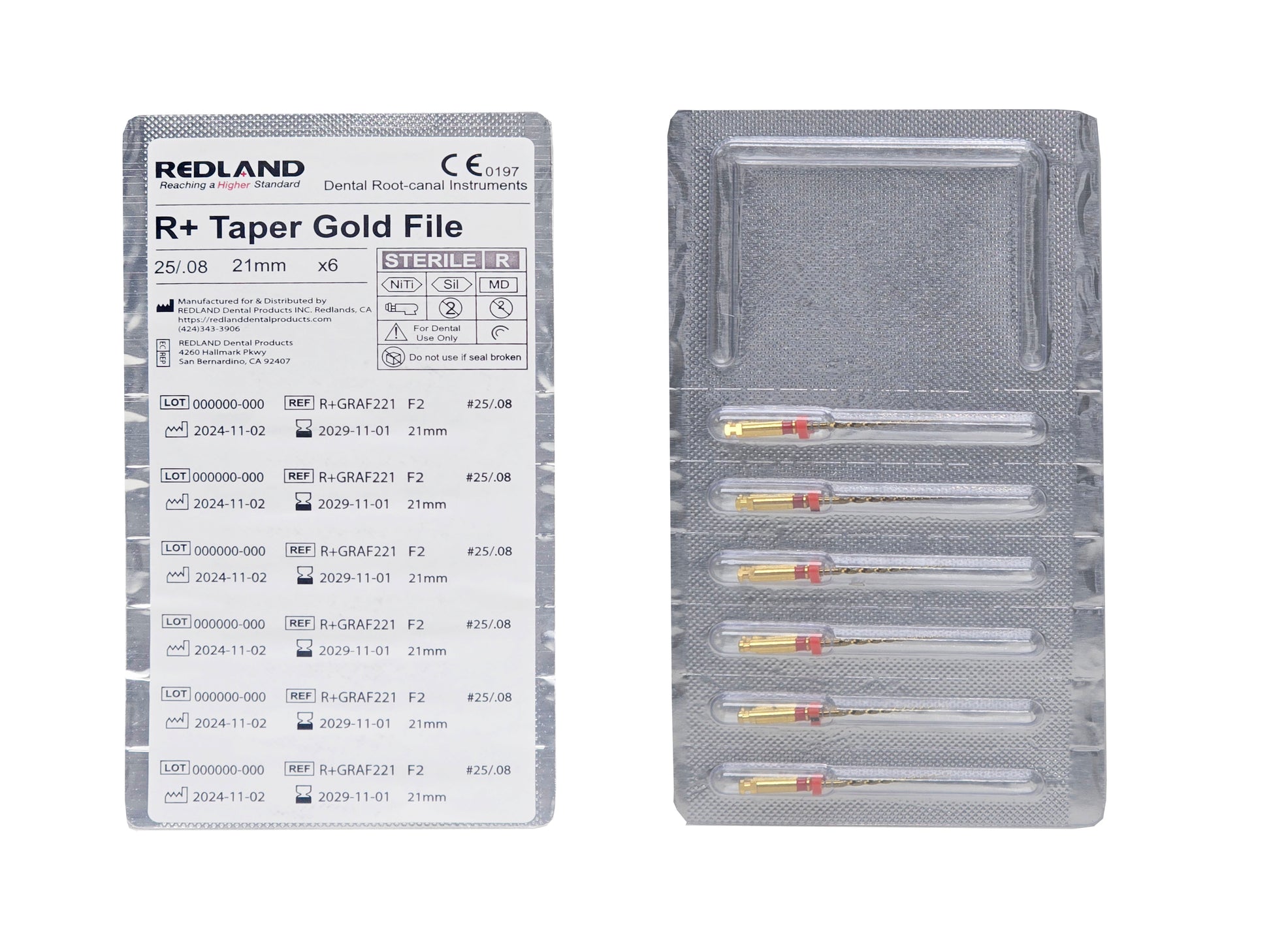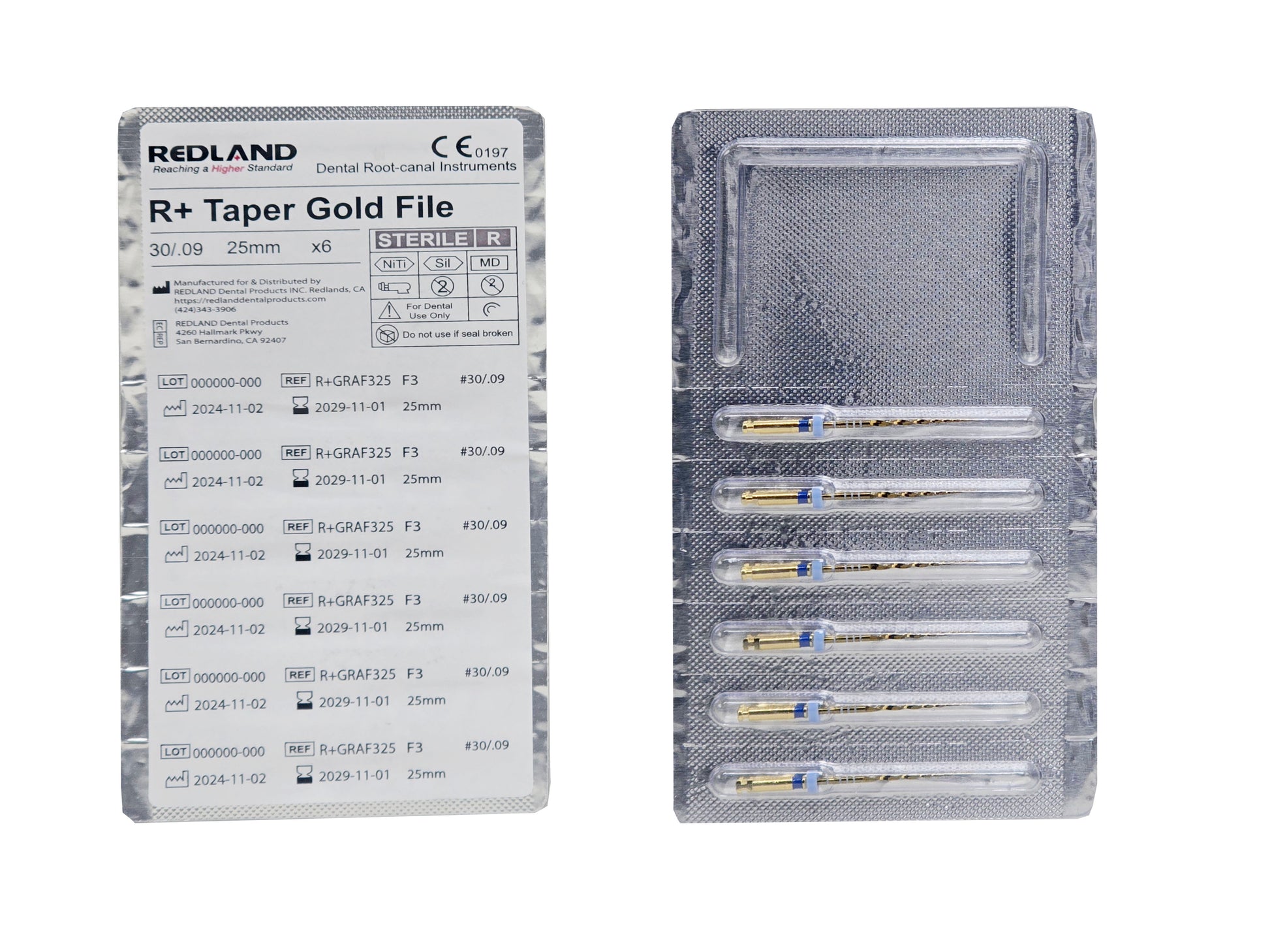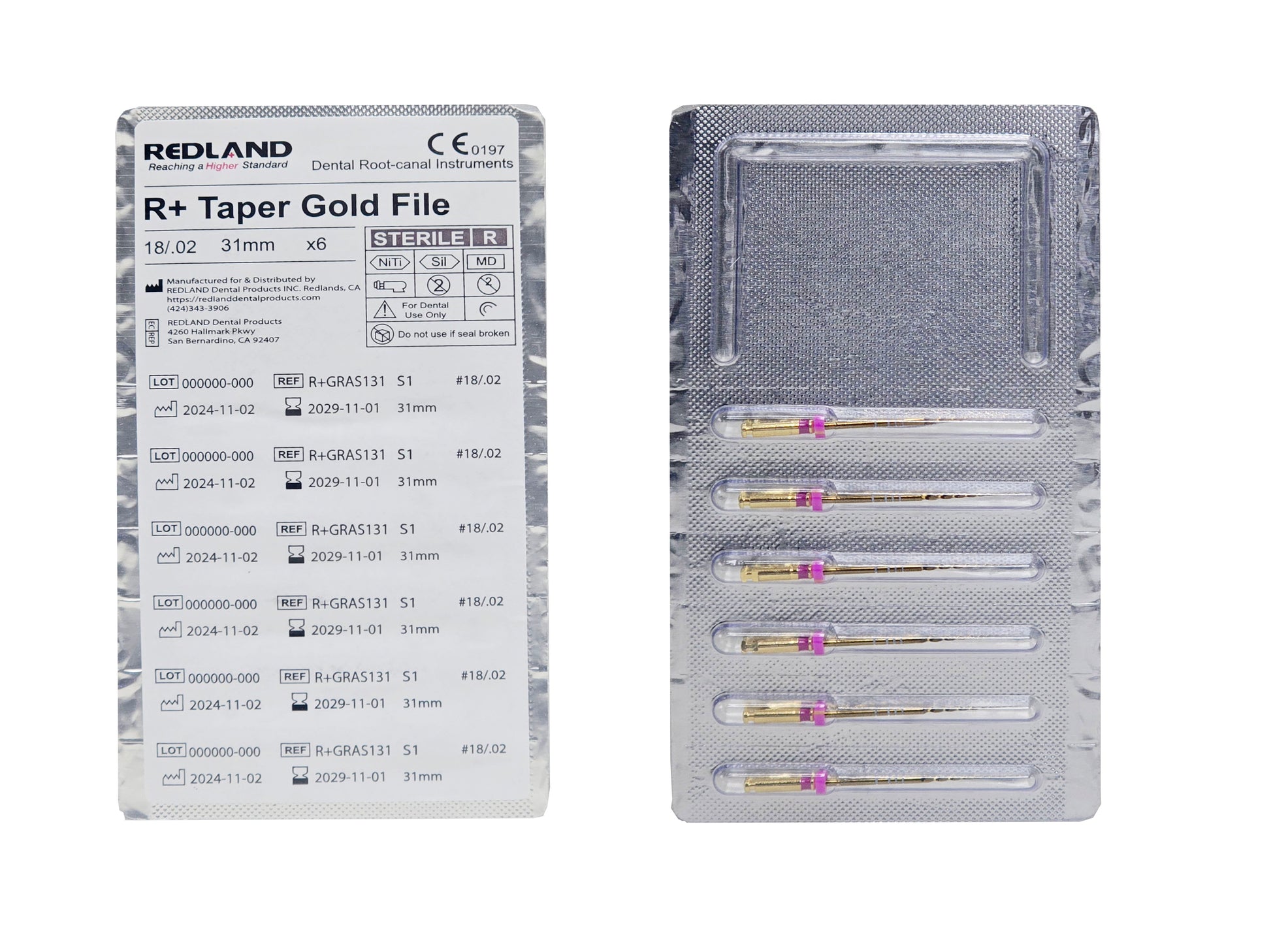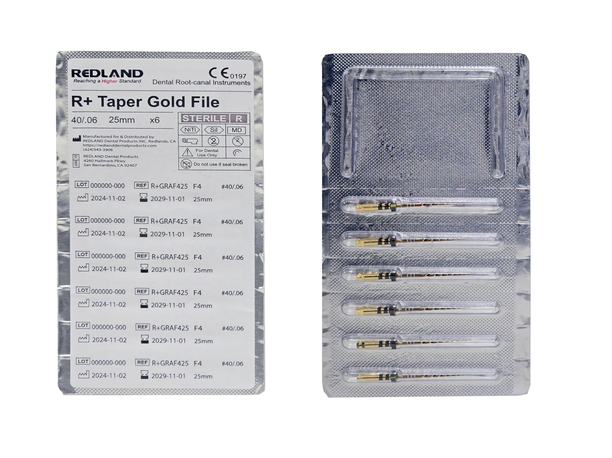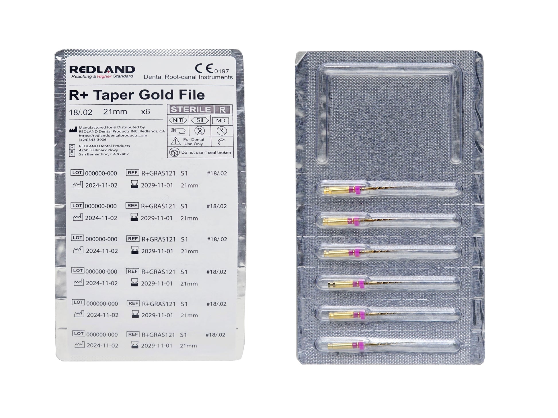 R+ Taper Gold features the same simplicity, smoothly tapered shapes and predictable performance you know and trust from R+ Taper Universal. Now the R+ Taper legacy continues with R+ Taper Gold. Developed with proprietary advanced metallurgy, R+ Taper Gold rotary files deliver greater flexibility for predictable R+ Taper performance that’s more brilliant than ever.