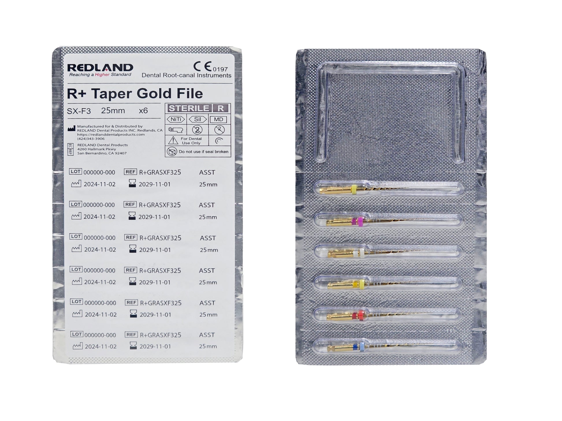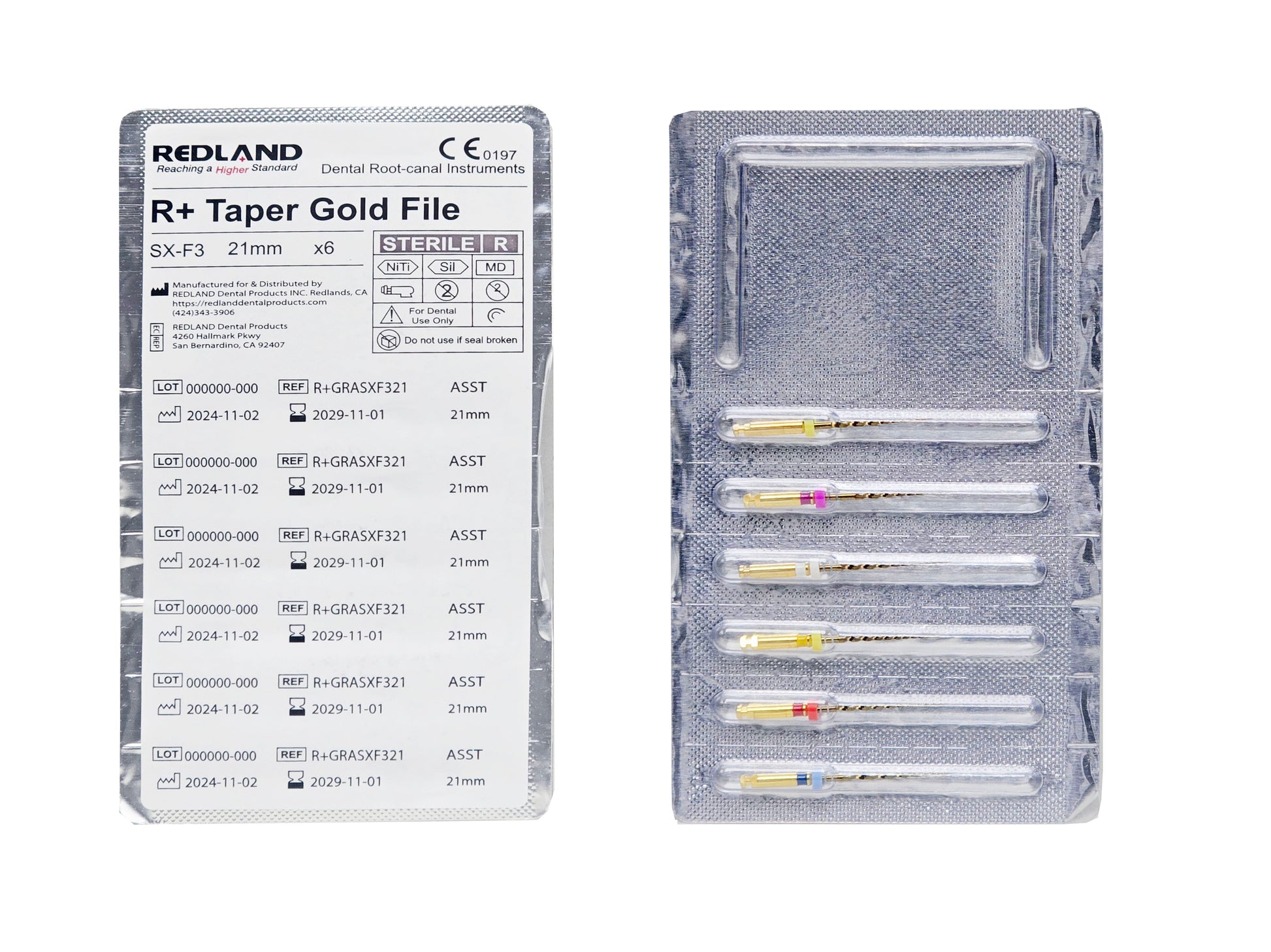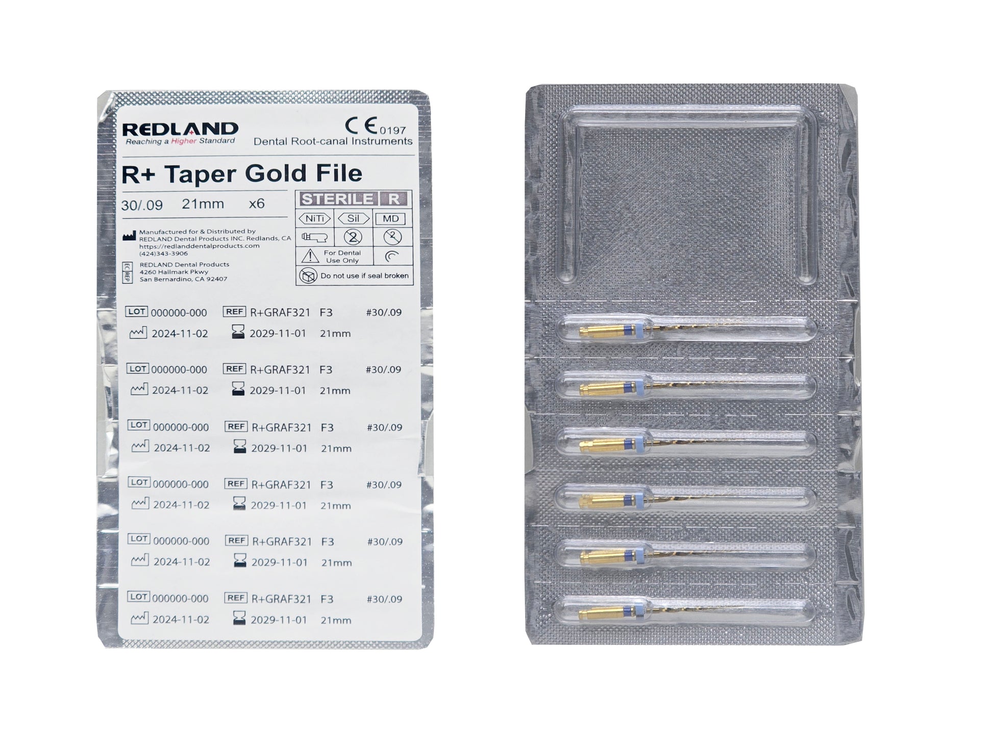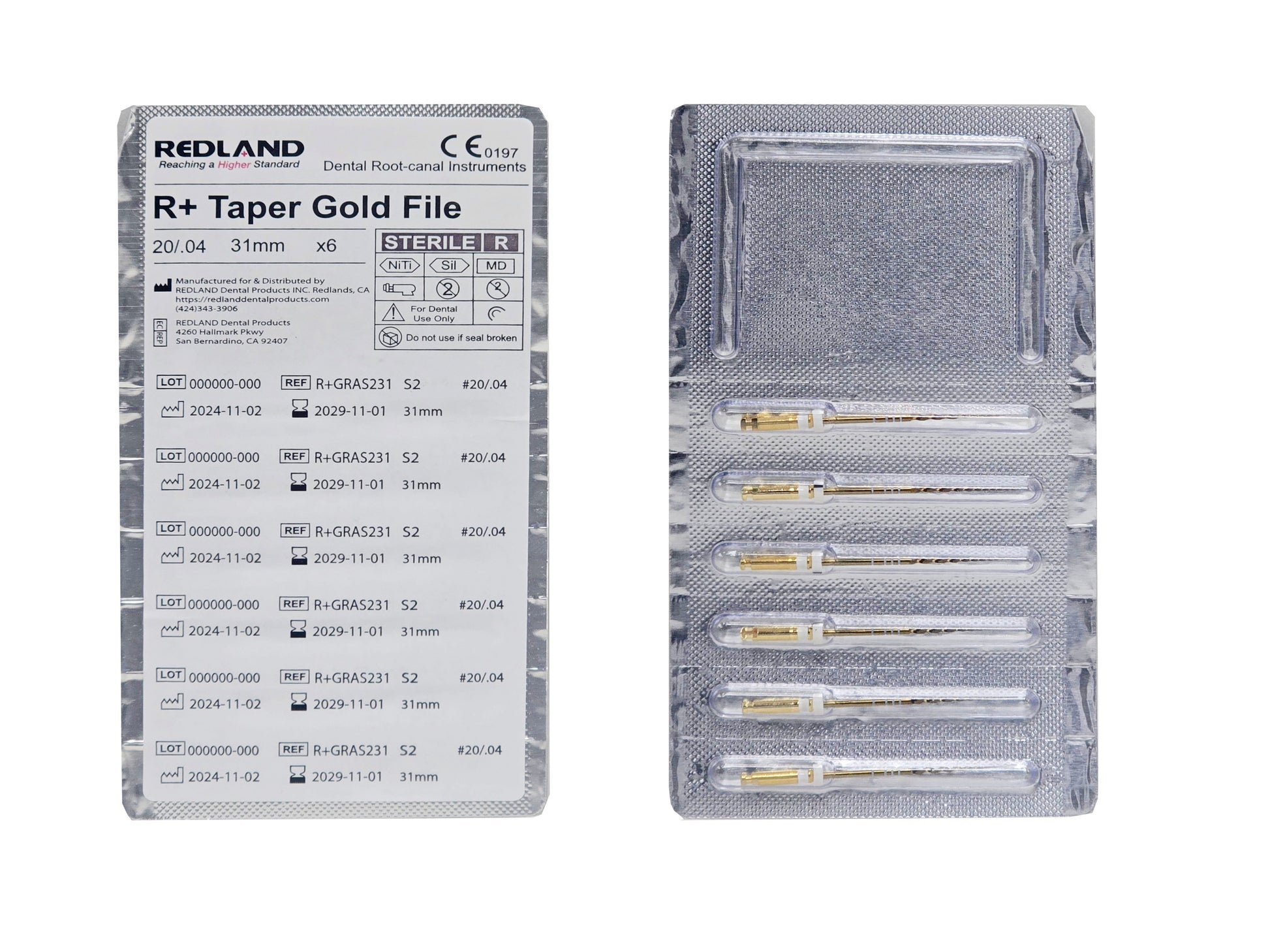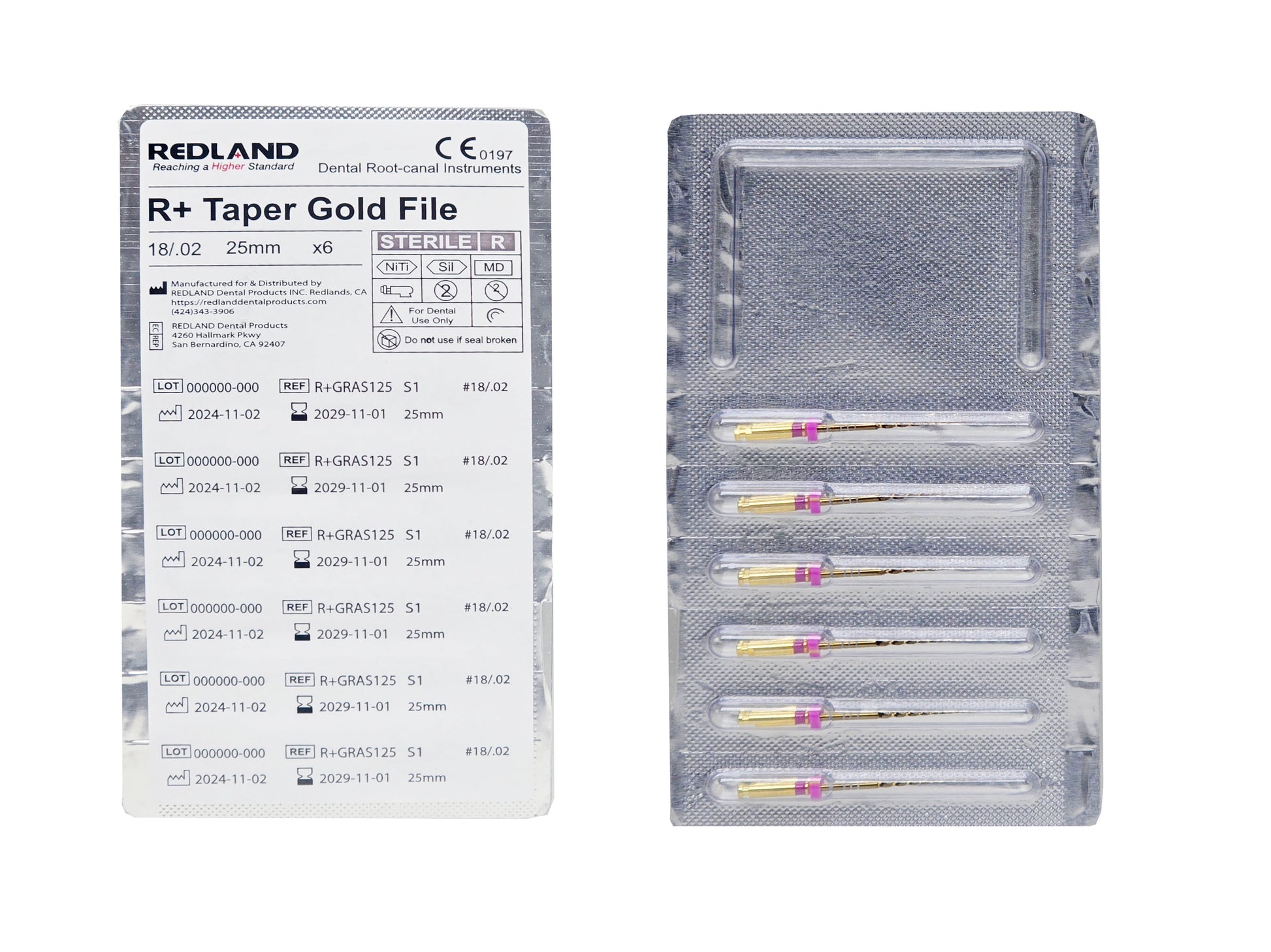 R+ Taper Gold features the same simplicity, smoothly tapered shapes and predictable performance you know and trust from R+ Taper Universal. Now the R+ Taper legacy continues with R+ Taper Gold. Developed with proprietary advanced metallurgy, R+ Taper Gold rotary files deliver greater flexibility for predictable R+ Taper performance that’s more brilliant than ever.