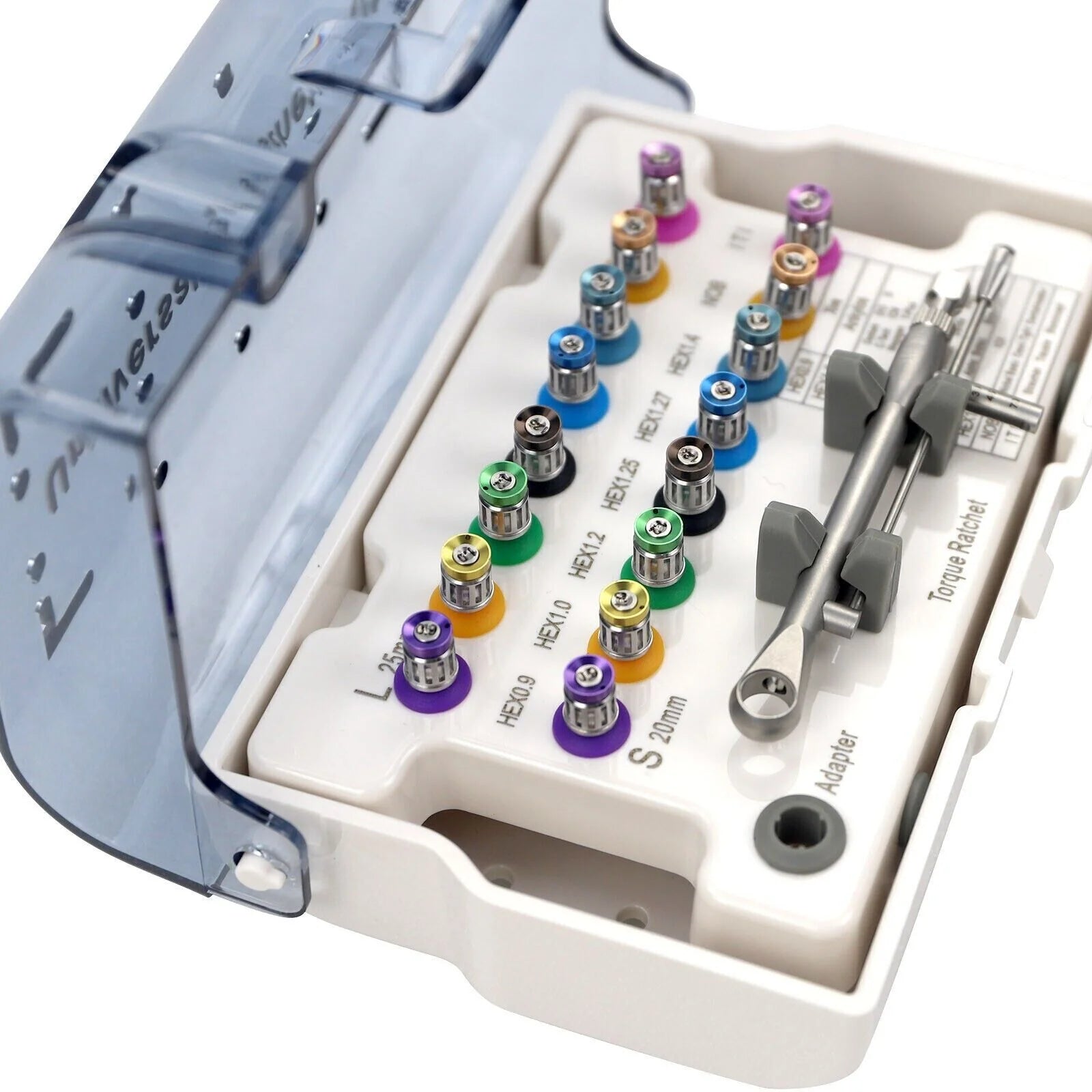 Torque Wrench:15-70N.cm | Drivers 0.9 (Long+Short) | Drivers 1.0(Long+Short) | Drivers 1.2(Long+Short) | Drivers 1.25(Long+Short) | Drivers 1.27(Long+Short) | Drivers 1.4(Long+Short) | Drivers NOB(Long+Short) | Drivers R165 (Long+Short)