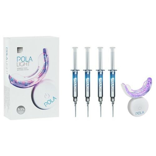 The Pola Light advanced whitening system pairs 9.5% Pola Day tooth whitening gel with a LED mouthpiece to help quickly whiten teeth in just 5 days.