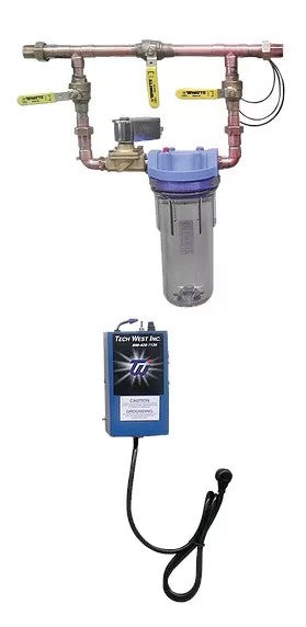 Tech West’s Water Manifolds offer safe after hours protection for today’s dental offices. Just push a button on the remote control panel and the water is off. Manifolds are available with or without a filter and with or without a low voltage contactor. The 3/4” unit has a clear filter housing and the 1” has a blue housing.
