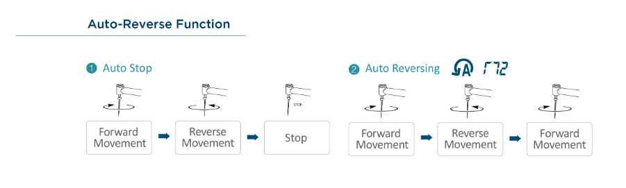 Auto Reverse = Users can choose Auto-rotation mode according to operation conditions.
