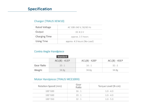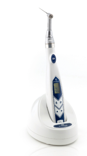The Traus Endo Motor is a portable and compact precision handpiece unit that is used to perform root canal procedures. This Endo handpiece uses precision processing technology to minimize vibration and has a mini angle head for security of sight when performing oral procedures.