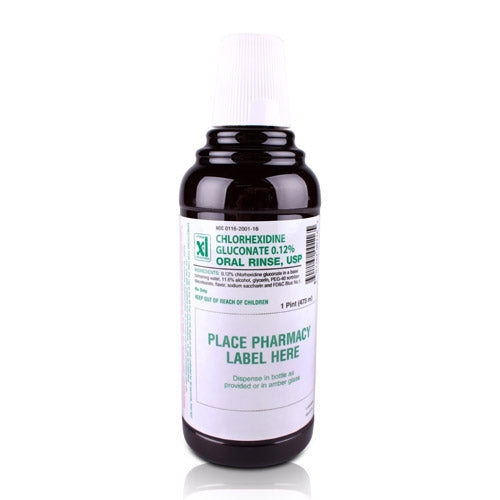 0.12% Chlorhexidine Gluconate (CHG) Oral Rinse by Xttrium Laboratories is the most effective treatment for gingivitis and/or gum disease. When used regularly as part of a professional program for the treatment of gingivitis, as characterized by redness and swelling of the gingivae, this rinse reduces bacterial growth by 54-97% over a six month period. Pleasant mint flavor and gluten free for patient acceptance.